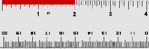 To measure with the ruler, line the object up to the first line of the ruler where there would be a 0. That's the starting point. Then see how far down the ruler it goes. In this example the red line is 2 inches long. |
